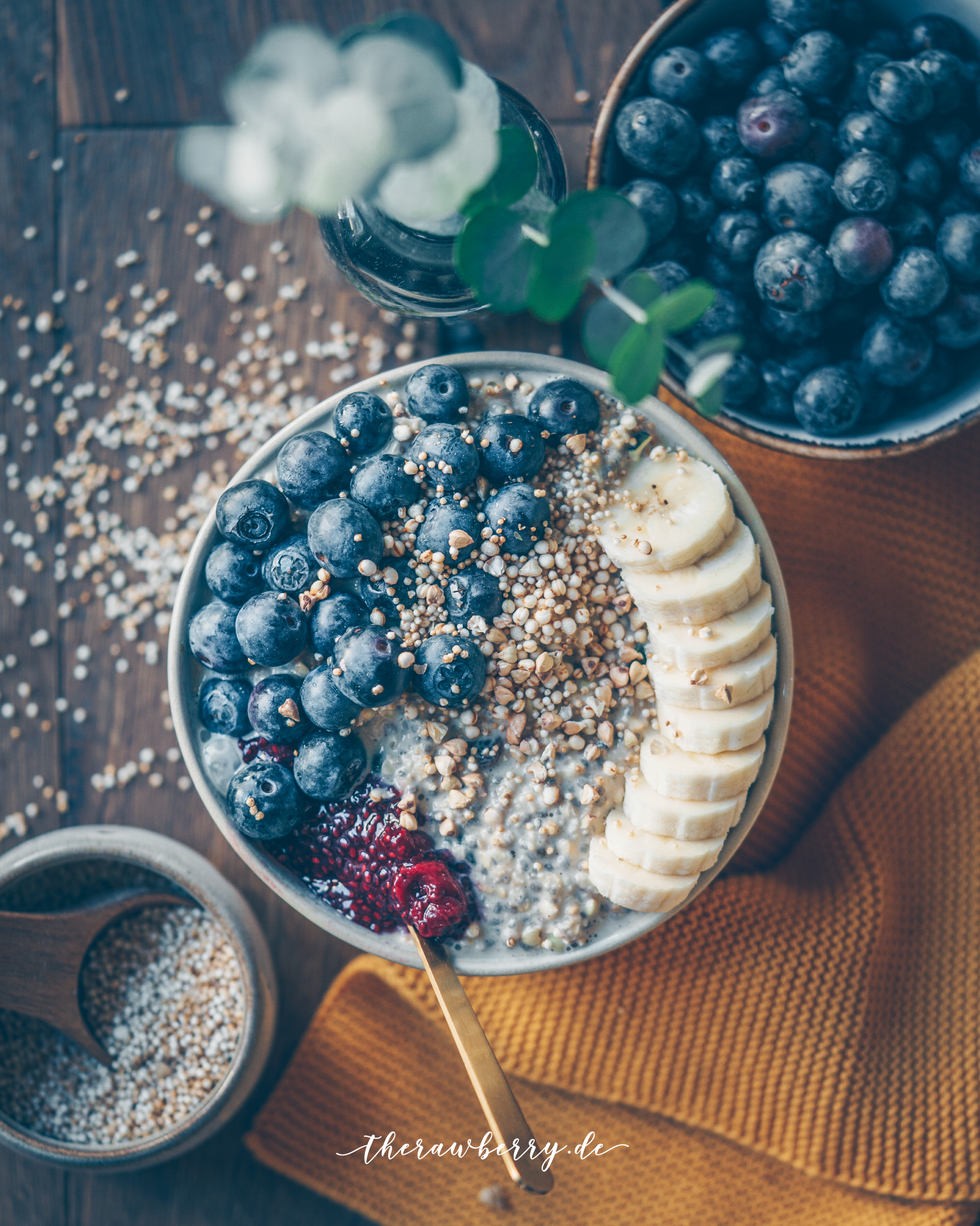 blueberries, overnight oats, breakfast, frühstück, therawberry, lecker, delicious, simple, einfach, oats, Haferflocken, essen, food, meal prep, fast, quick, schnell, glutenfree, gluten frei, dairy free, GF, no refined sugar, industriezucker frei, Diät, vegan, Schüssel, bowl, food photography