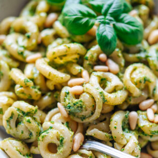 Super einfache Pesto Pasta für ein schnelles Essen unter der Woche. Komplett glutenfrei und vegan - perfekt für die ganze Familie.